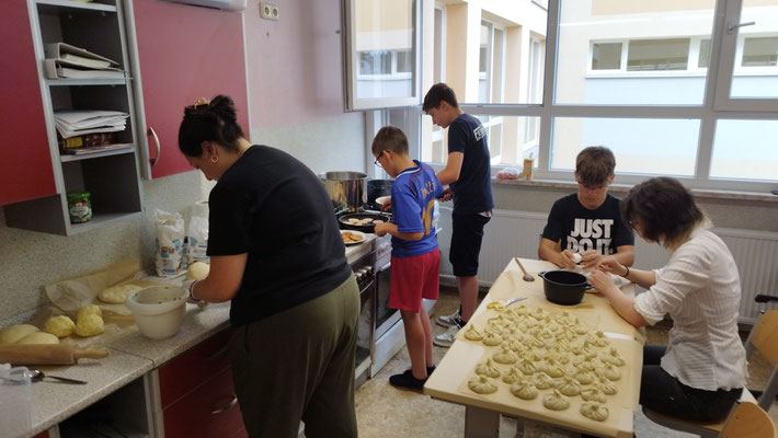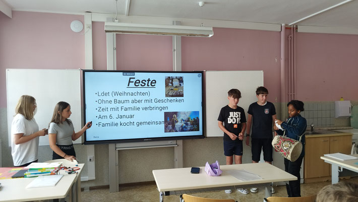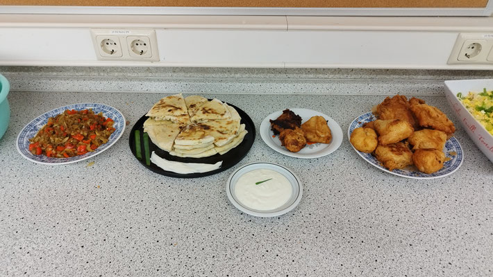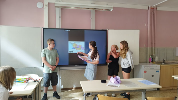 Unsere Klasse besteht aus 5 verschiedenen Nationen. Eritrea, Georgien, Ukraine, Tschetschenien und Deutschland. In Gruppen haben wir über die Länder recherchiert – zu Geschichte, Persönlichkeiten, Kultur, Städten und Essen. Am 25.06. stellten wir zum Projekttag die Ergebnisse mit Plakaten oder PowerPoint vor. Einige Schüler brachten sogar Instrumente mit, sangen oder trugen traditionelle Kleidung. Zum Abschluss kochten wir gemeinsam typische Gerichte aus den verschiedenen Ländern. Es war ein schöner und abwechslungsreicher Tag.