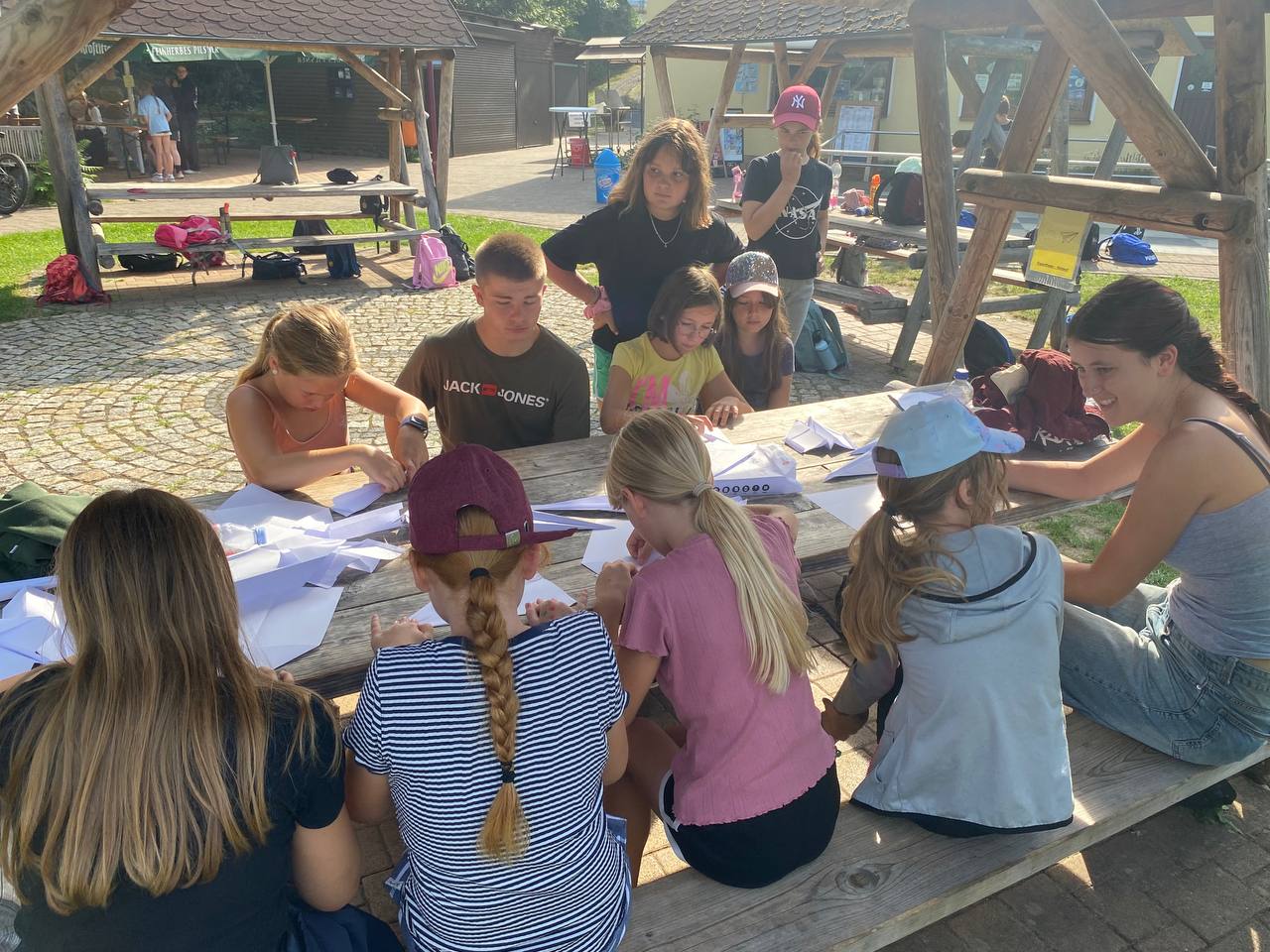 Zum Abschluss dieser besonderen ersten Woche machten sich die Fünftklässler am Freitag gemeinsam auf den Weg nach Hohenwarte. Dort hatten die Zehntklässler mit Frau Brühl und Herrn Wölfel zahlreiche Spiele vorbereitet, bei denen sich alle noch besser kennenlernen konnten. Trotz der hohen Temperaturen war die Stimmung großartig, und am Ende waren sich alle einig: Das hat richtig Spaß gemacht!